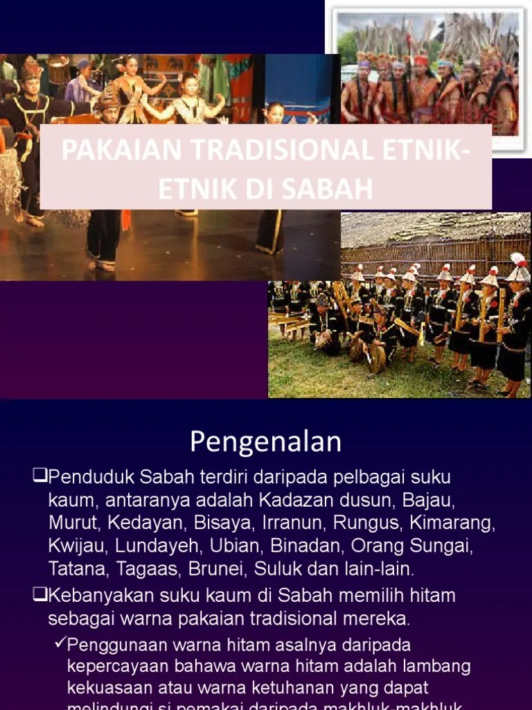Penggunaan pakaian tradisional kaum murut boleh dilihat dari dua sudut zaman iaitu zaman klasik dan zaman moden. Lkns tv pada kali ini membawa anda untuk mengenali aksesori etnik murut tiniwak. Nur liyana berkata, beliau mengenakan pakaian tradisi itu sebagai satu cara untuk mempamerkan tradisi dan kebudayaan masyarakat sabah ke . Bagi masyarakat kaum bajau yang tinggal di semporna, pakaian tradisional dipanggil alal bimbang yang biasanya dipakai ketika pesta regatta lepa . Baju tradisional suku kaum murut yang dikenali dengan nama pinongkoloh menggunakan kain hitam dengan dihias menggunakan pelbagai warna manik dan corak.pakaian .